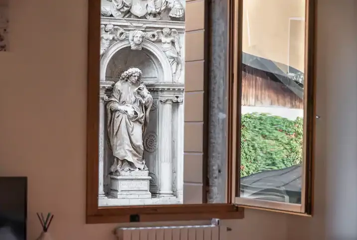 Dalle grandi e luminose finestre della casa potrete ammirare statue e colonne della basilica.
